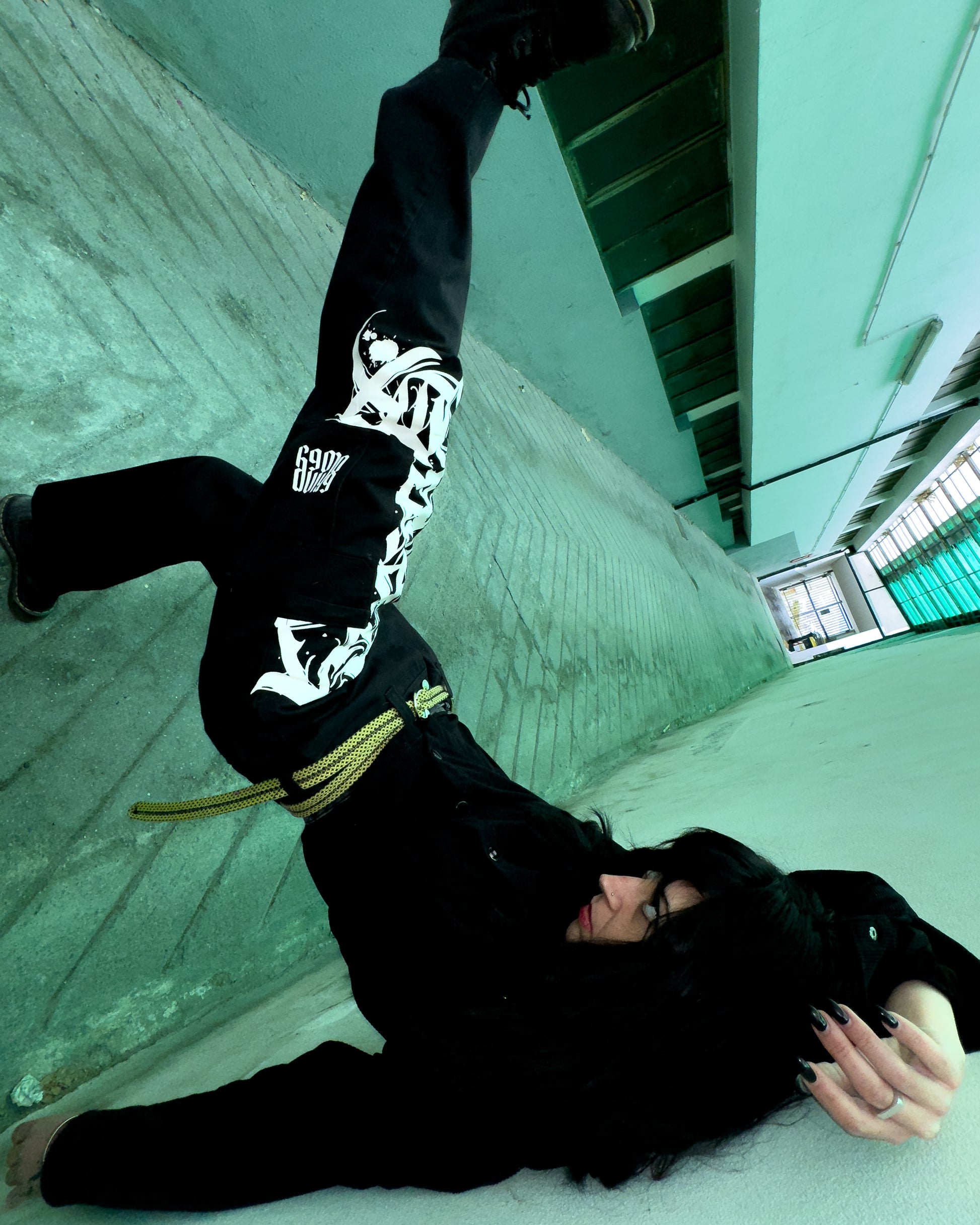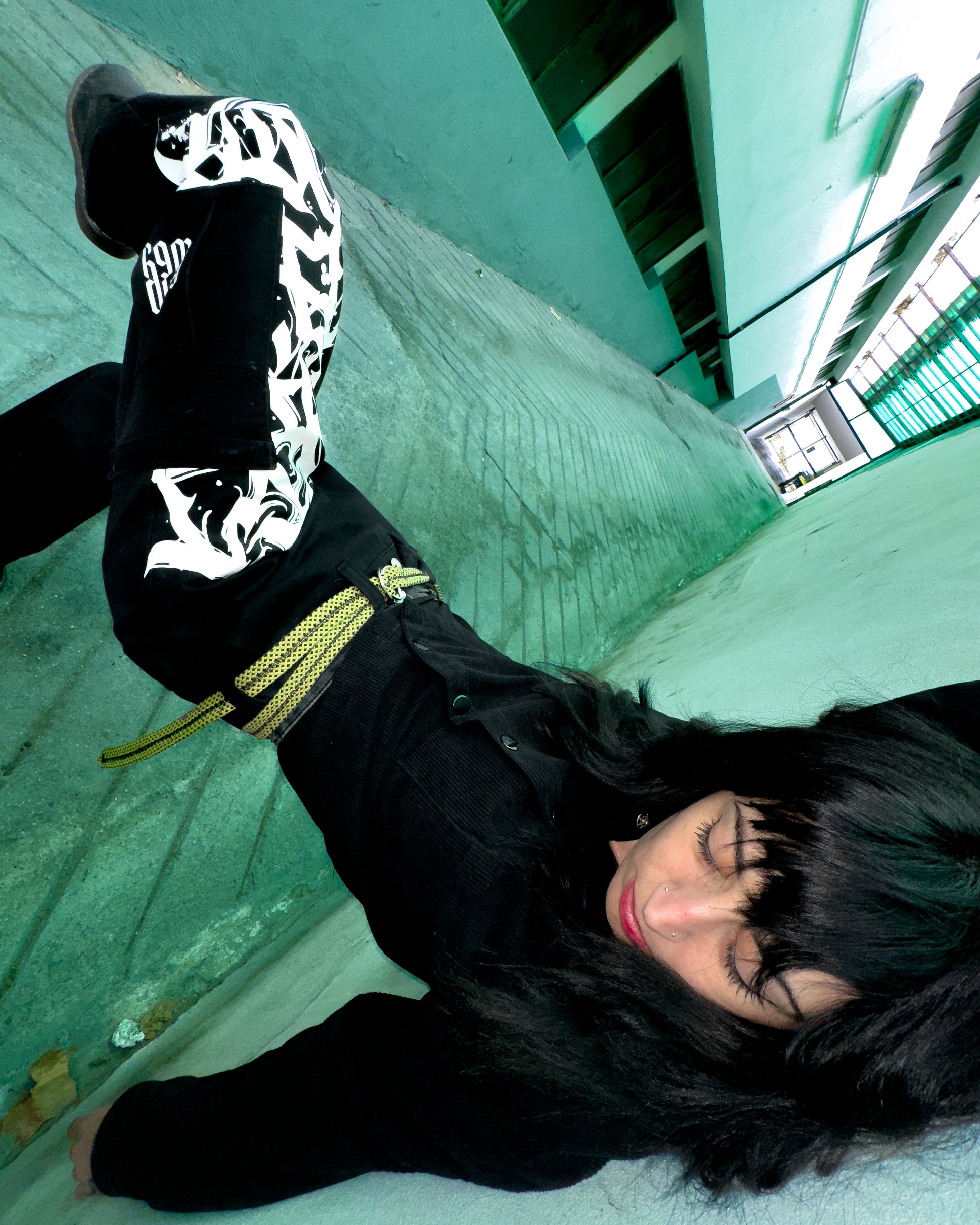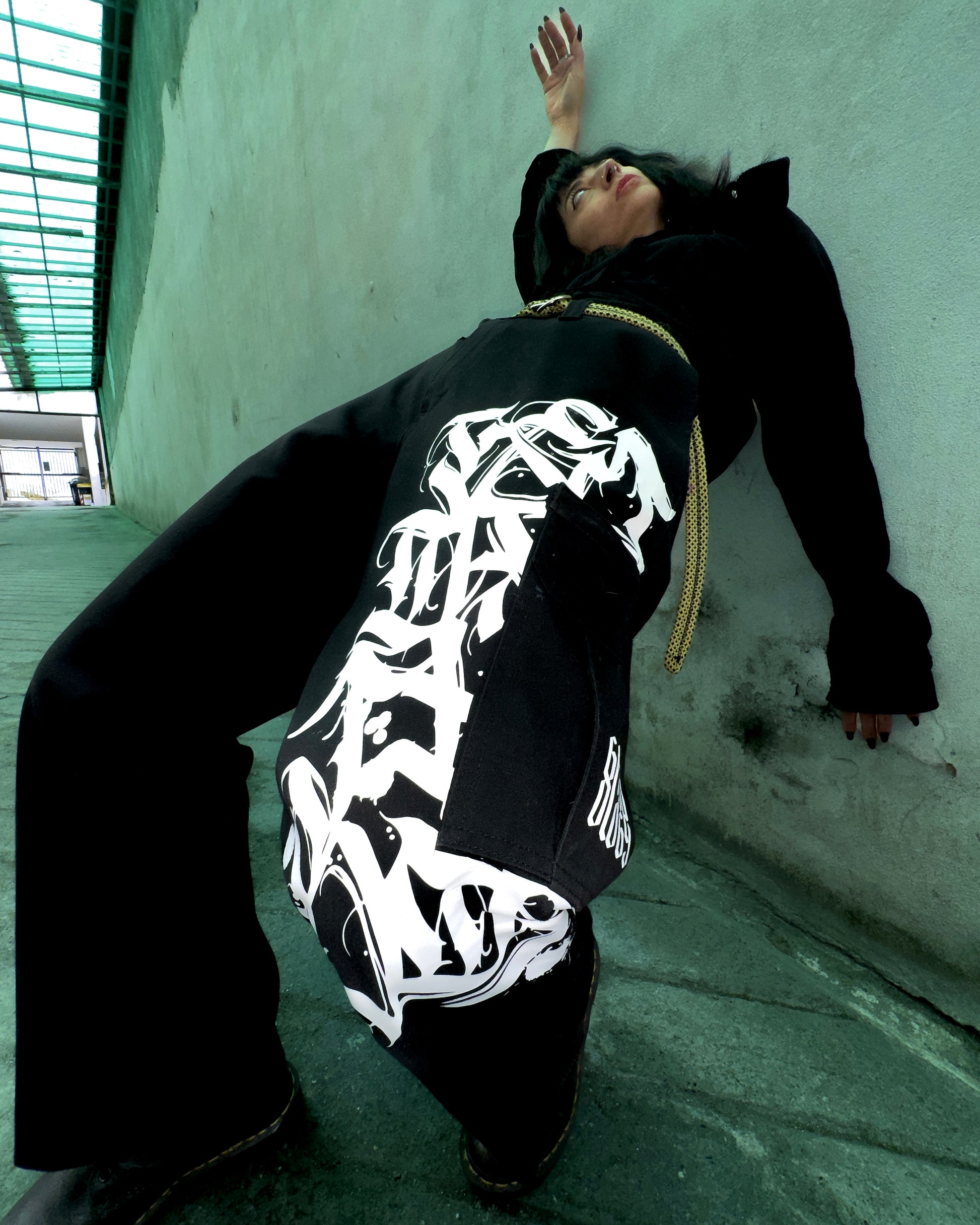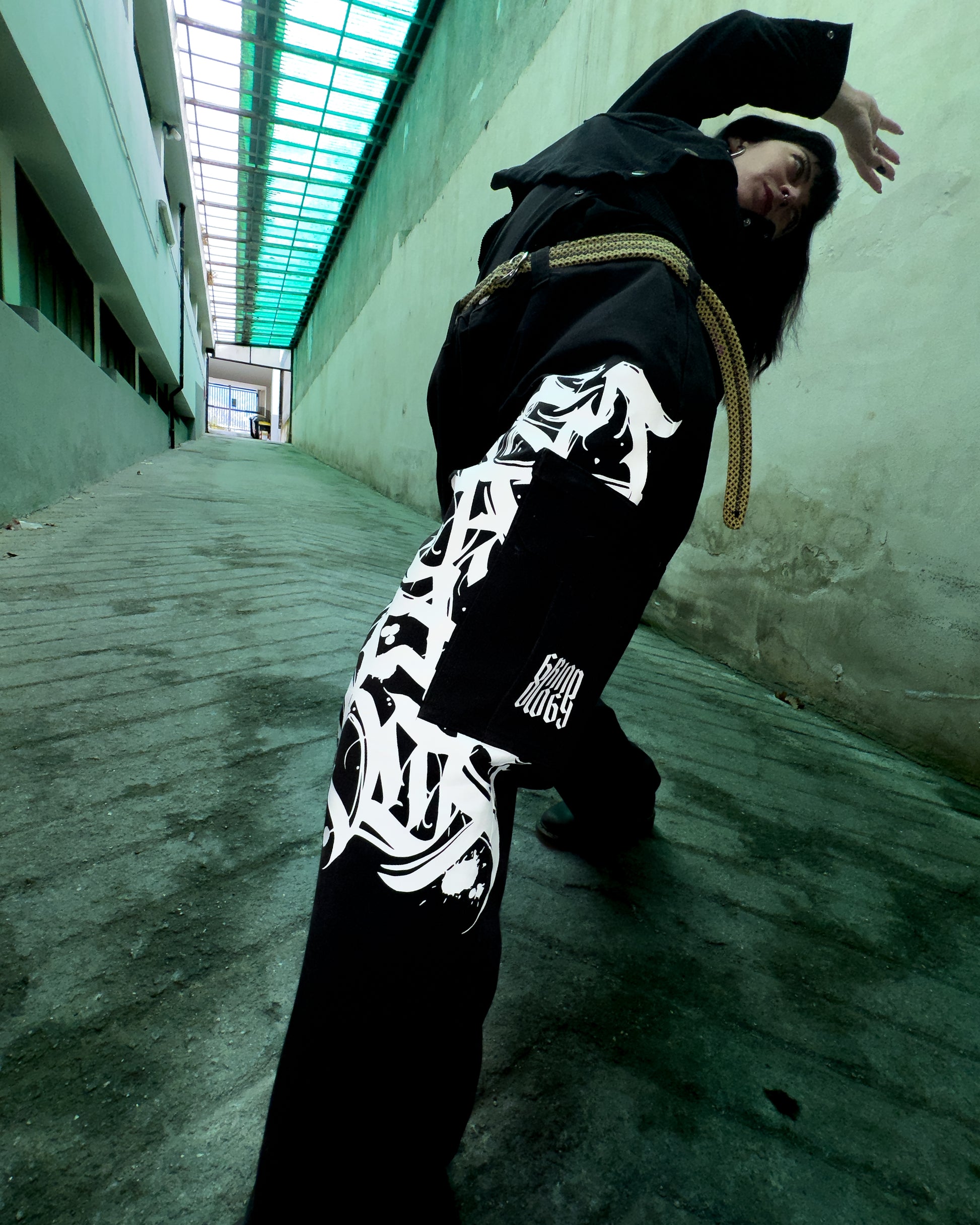 Dickies reworked con lettering decorativo su gamba sinistra, capo unisex, con cintura upcycled inclusa. Taglia: 46