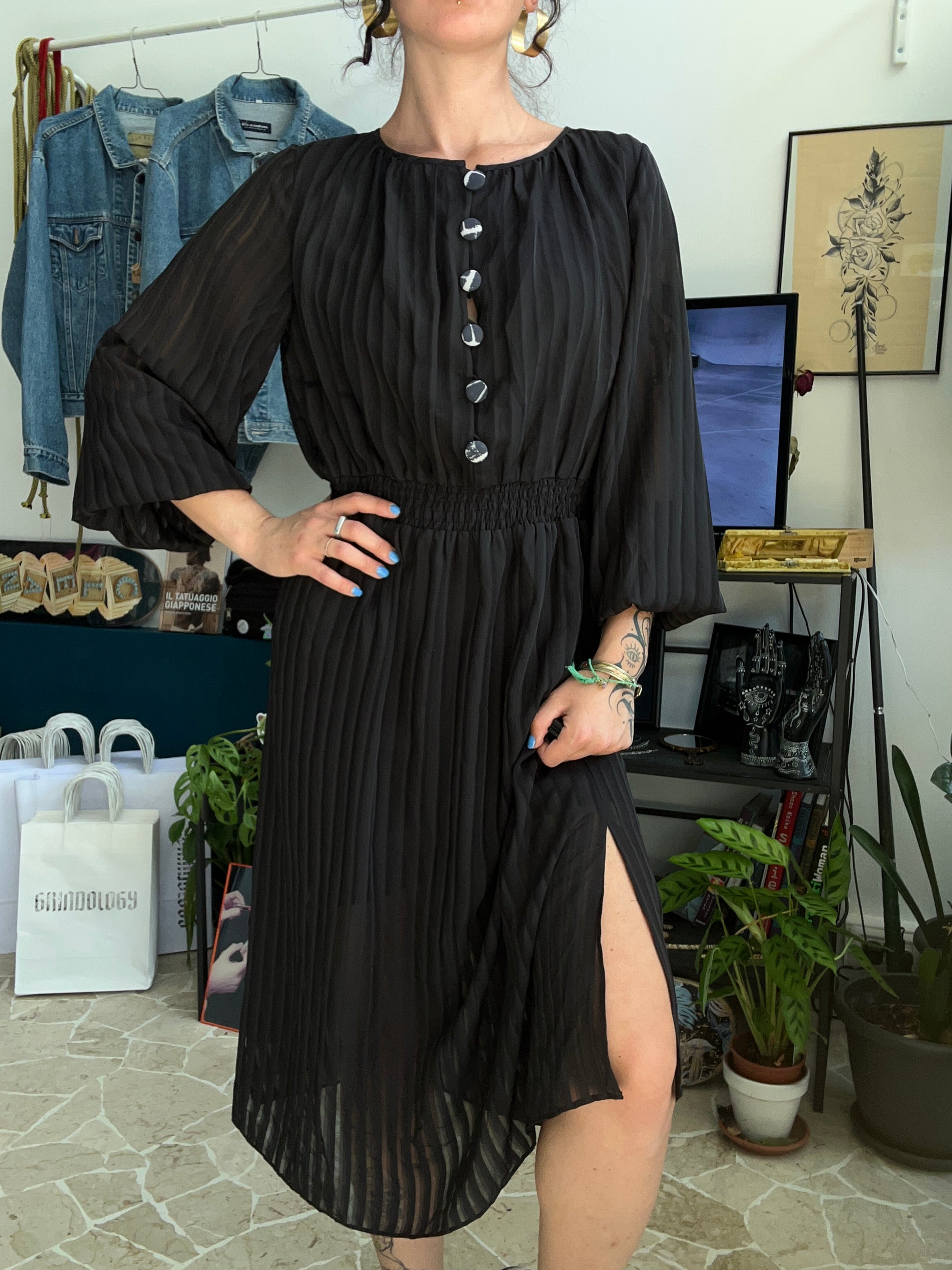 Abito da donna lungo vintage, in perfette condizioni, con spacco laterale e bottoni sul fronte. Taglia: M.