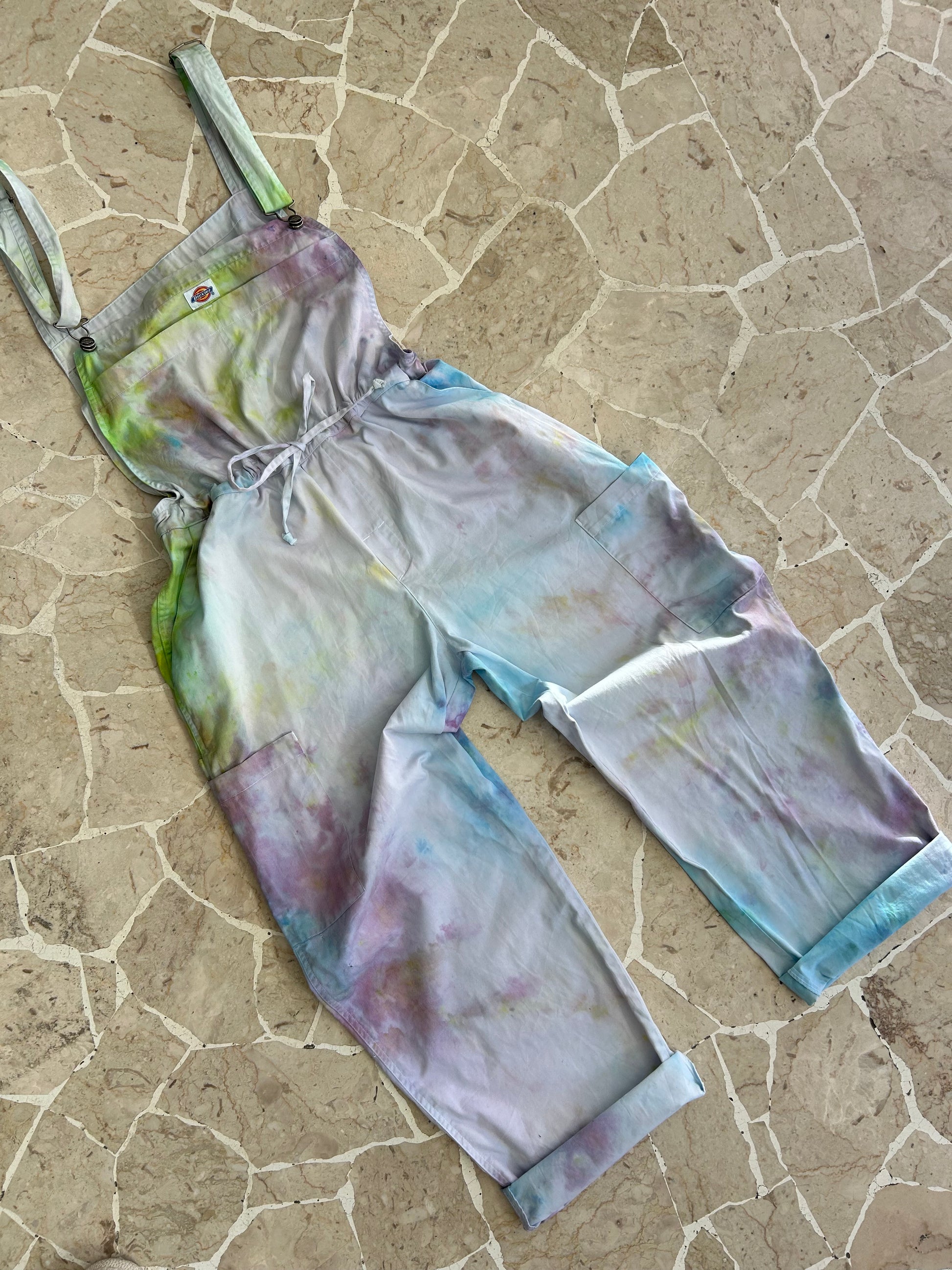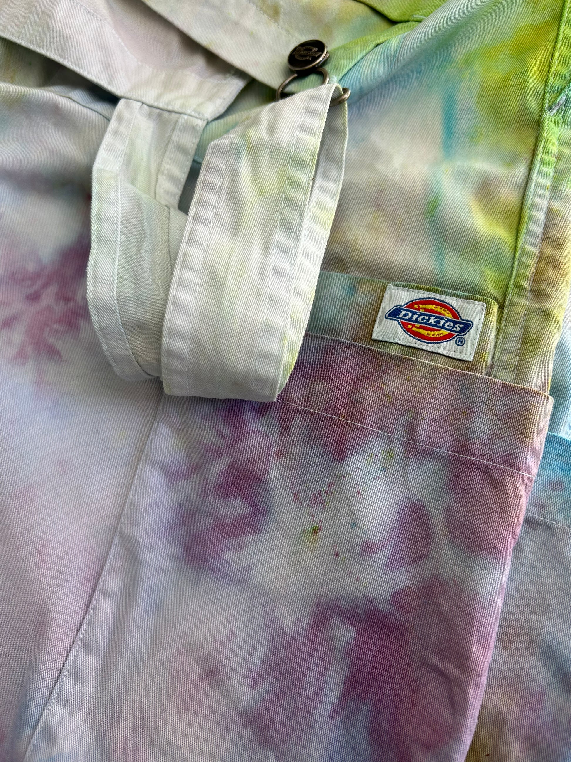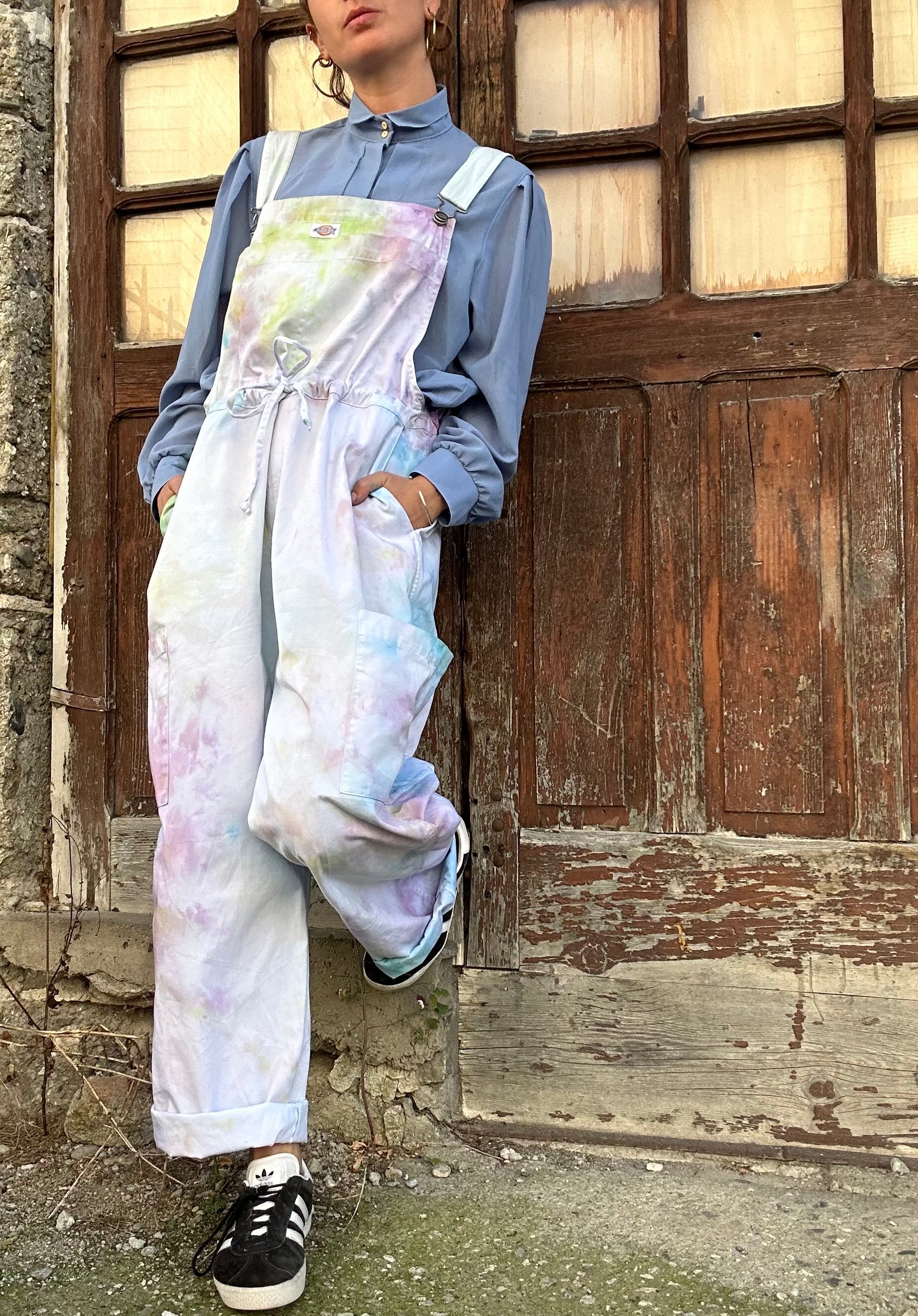 Salopette dickies customizzata con tecnica tye die colori pastello. Pezzo unico, taglia: L.