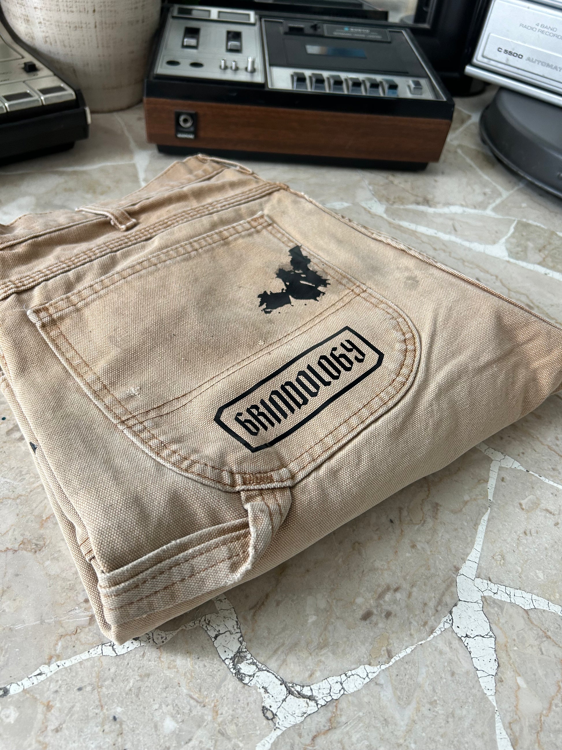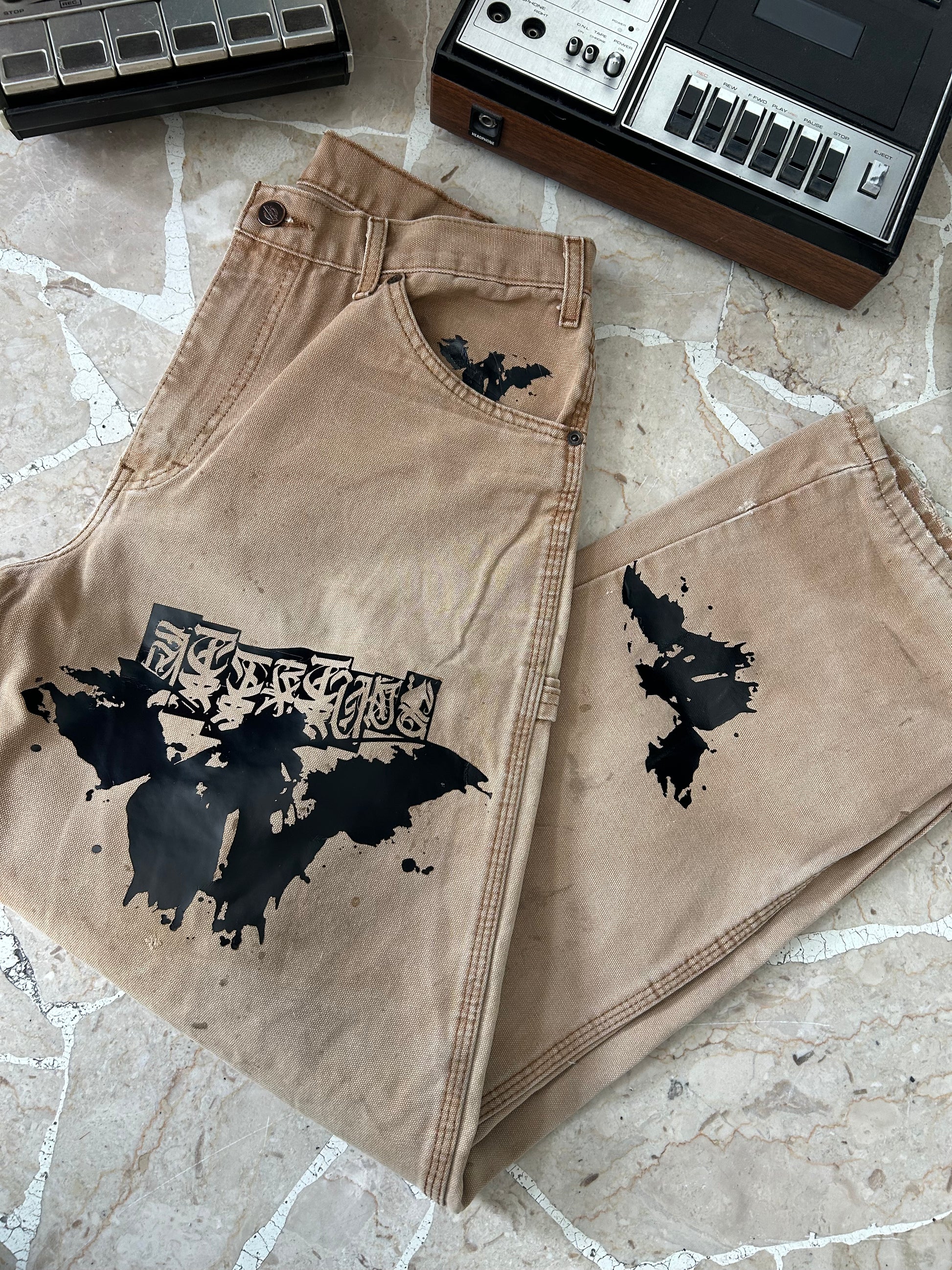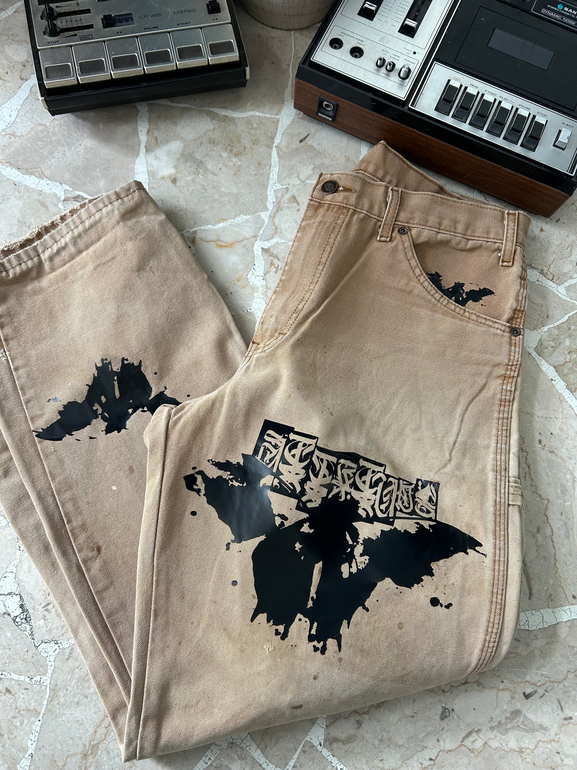 Dickies brown grado B, Reworked Attitude 🦋, rielaborato e realizzato all’interno del Lab, artwork by grindology. Taglia: 44
