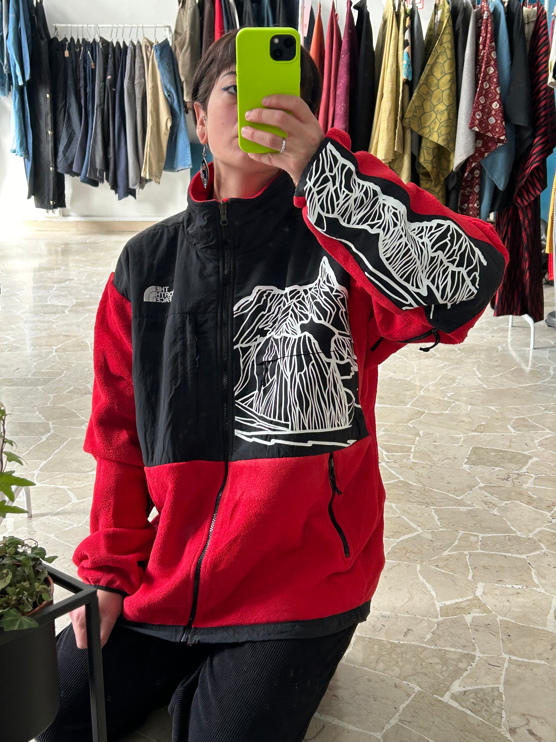 North Face Denali Red anni ‘90 con custom eseguita in LAB. ARTWORK BY GRINDOLOGY.