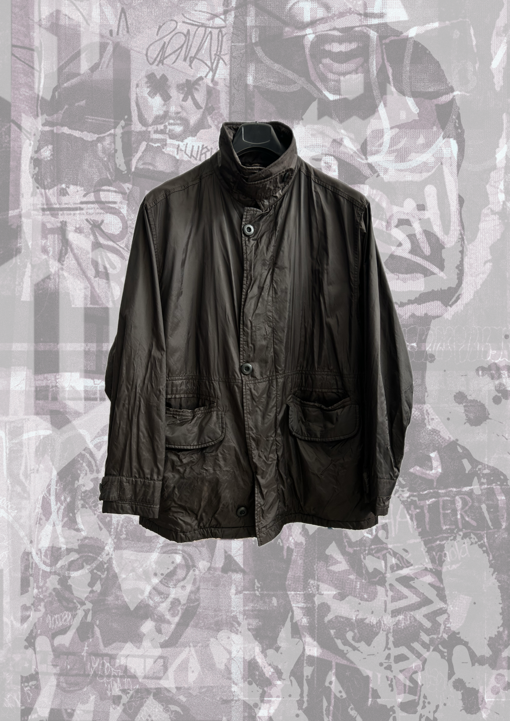 Giacca quattro tasche anti pioggia color bruno, fodera interna in velluto nero, vintage in perfette condizioni, taglia: L.
